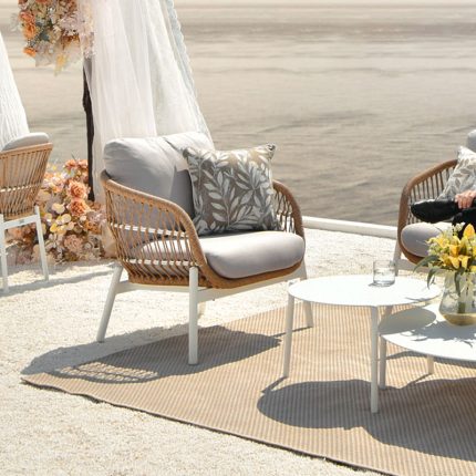 Bari sofa has a unique leg frame, rendering a modest yet eye-catching tone. The “V” weave and rope texture blend in the tone so perfectly that this worry-free sofa will be the first choice for many.