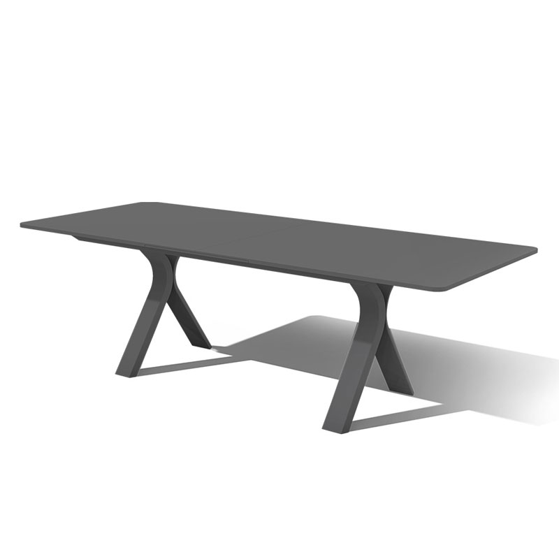 CARSON presents an extendable dining table featuring a thermo-curved aluminum base, thoughtfully crafted to harmonize with elegant ceramic glass or sintered stone tops.